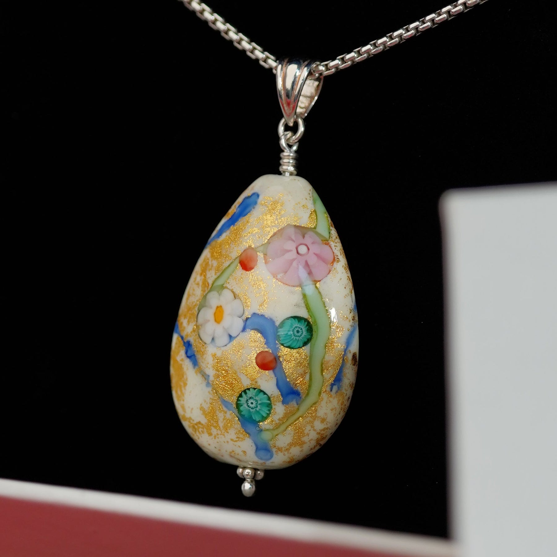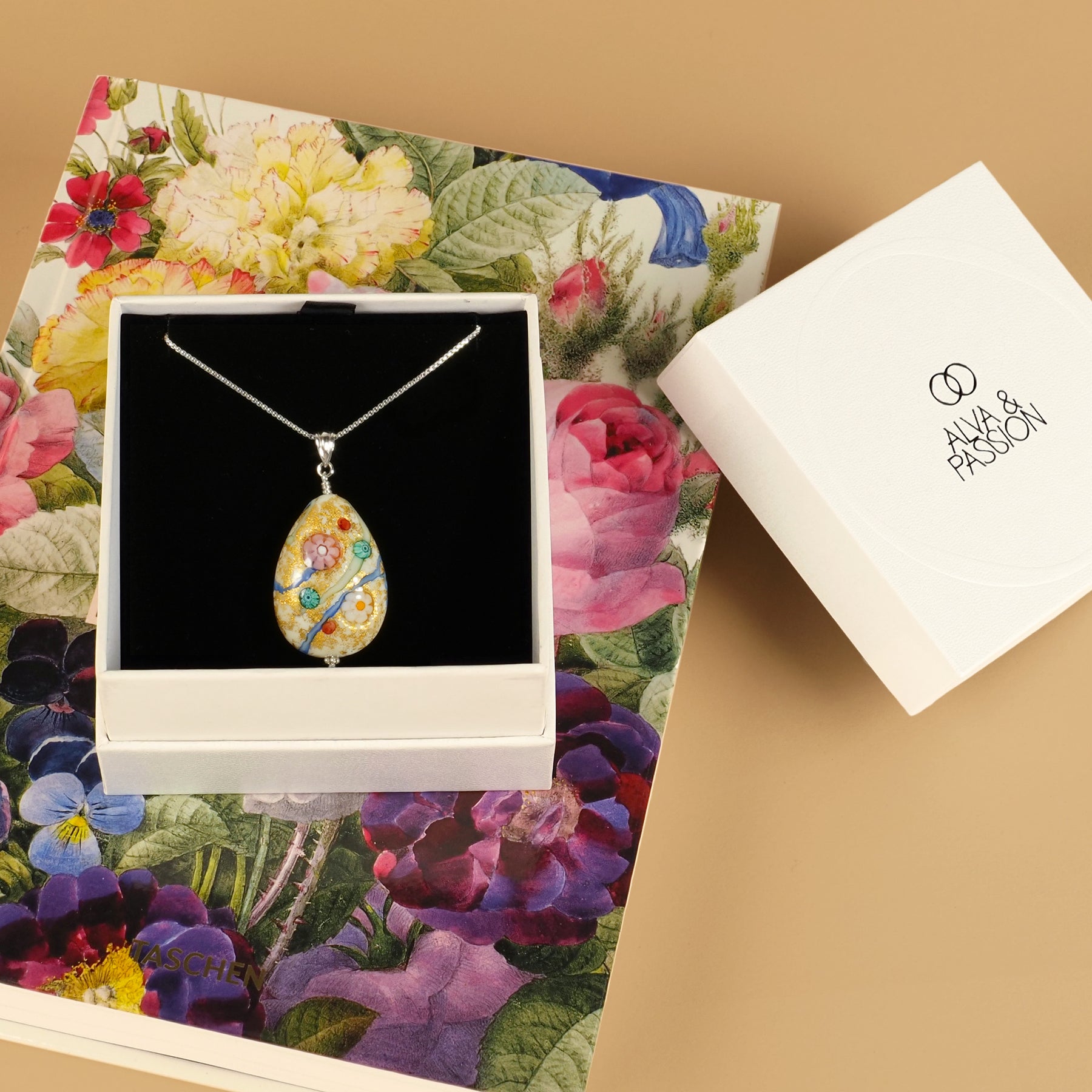 這款吊墜由意大利工匠以純手工打造,採用精湛的琉璃燒製工藝,將盛放的花朵與金箔巧妙融合,創造出層次豐富且充滿藝術感的作品。象徵花開富貴的設計,不僅是一件彰顯品味的配飾,更是新年或節日送禮的完美選擇,傳遞祝福與喜悅。