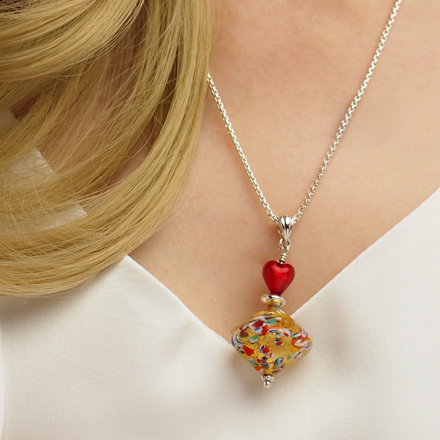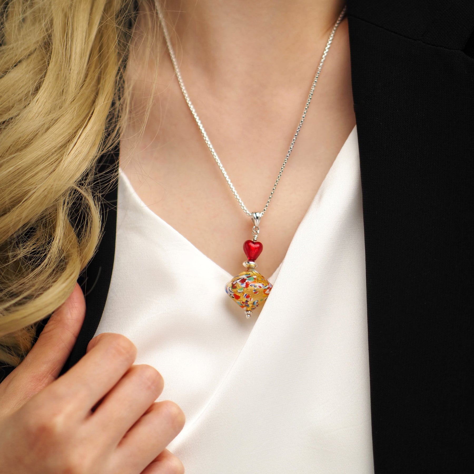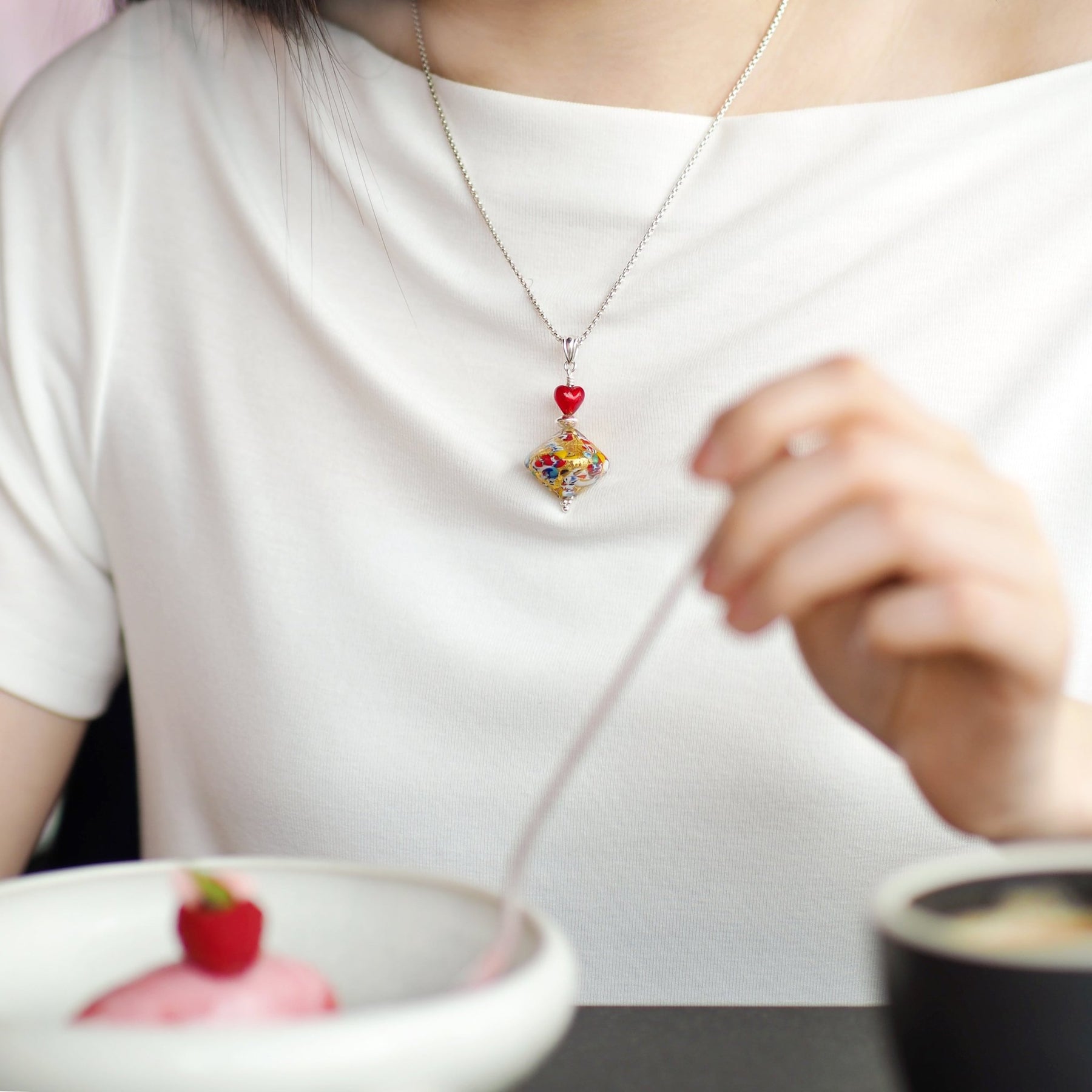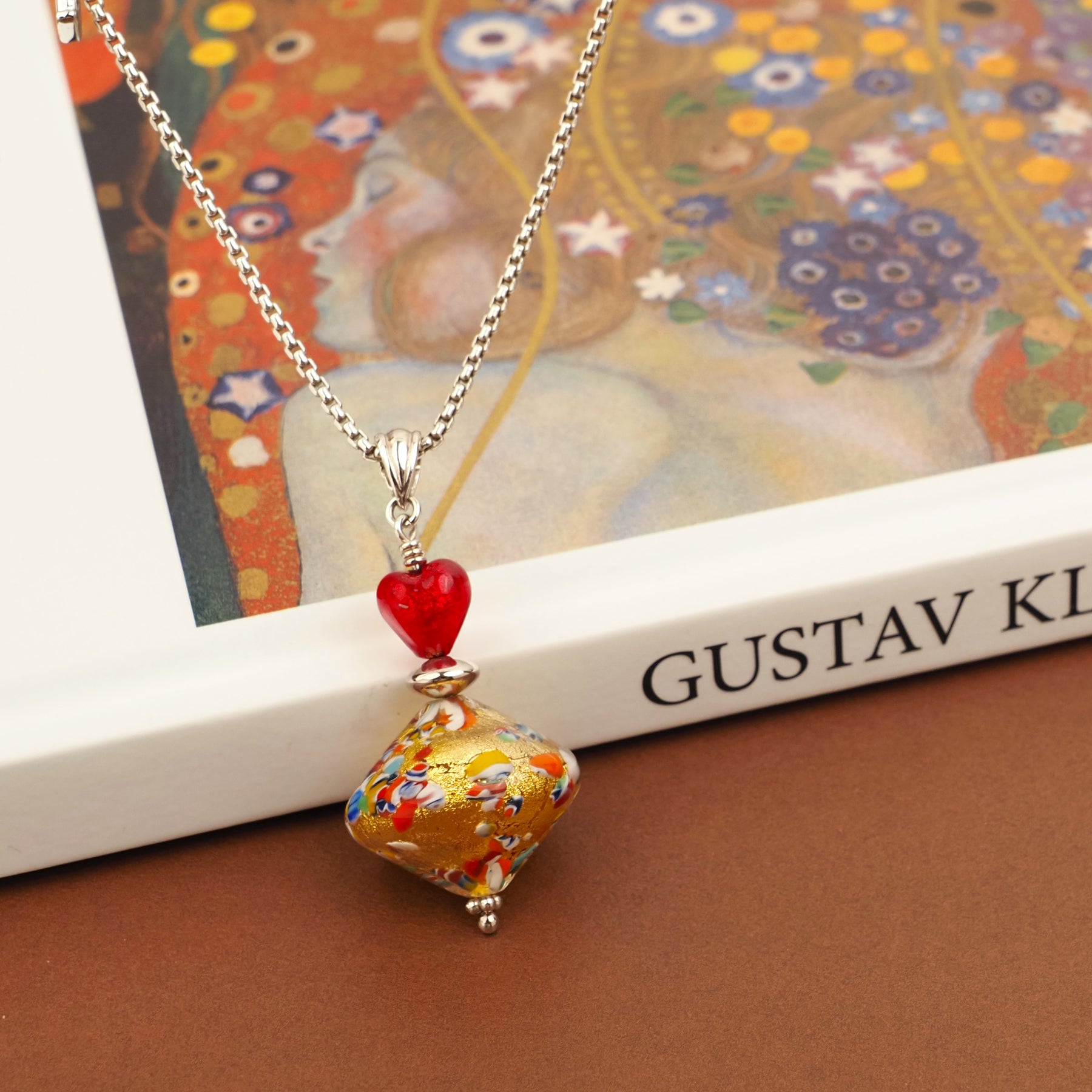 THE KISS | Elegance 陀螺吊墜頸鏈 - 金箔 x 紅心 - 吊墜頸鏈